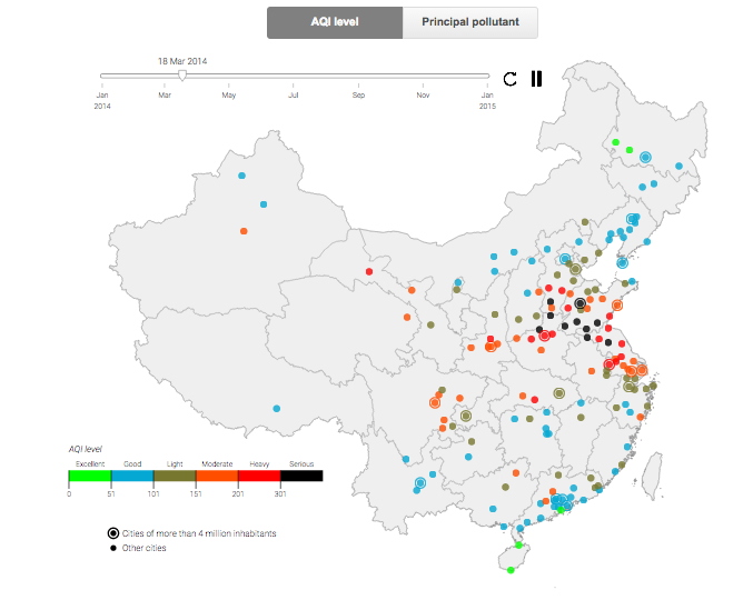 ps. Angel Hsu has pointed out to this interactive map showing the air pollution levels in some Chinese cities in 2014. Data comes from the Ministry of Environmental Protection and you can download it here.